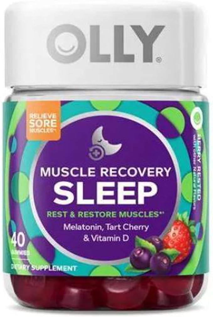 Amazon Com Olly Muscle Recovery Sleep Gummy 40 Gummies Berry Rested Flavor Formulated With 3mg Melatonin Vitamin D Tart Cherry Helps You Sleep Soundly And Relieve Sore Muscles Choose Your Pack 1
